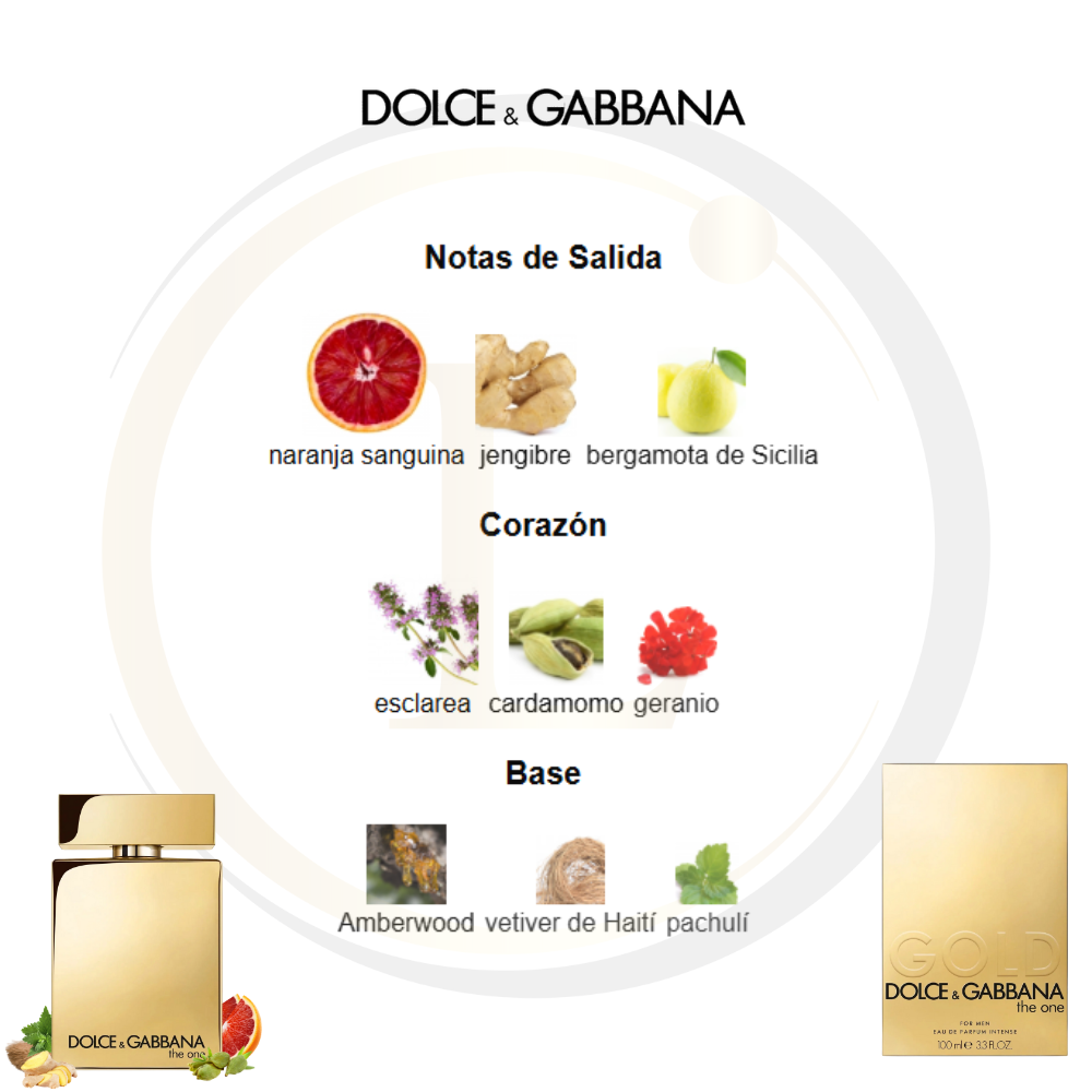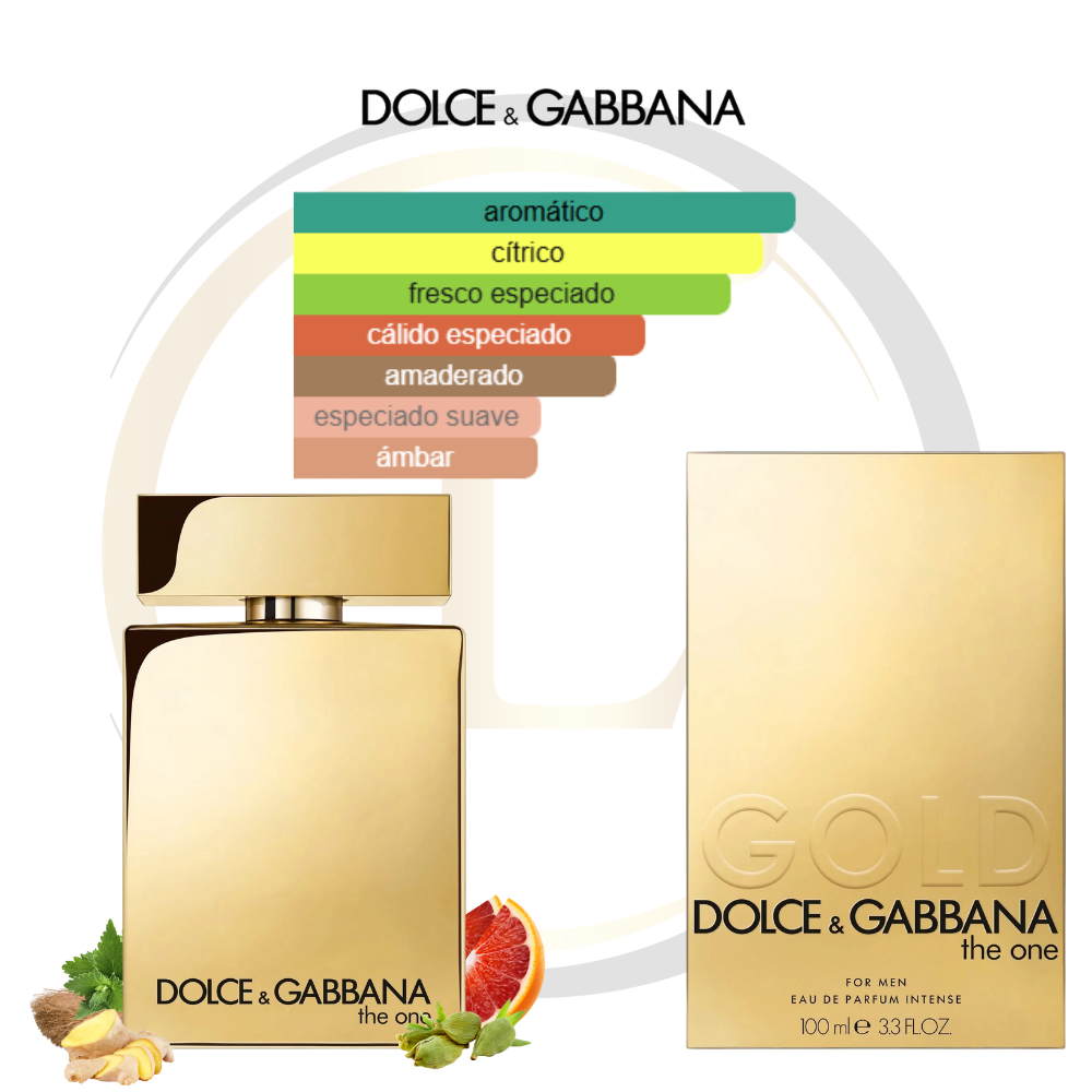 The One Gold For Men de Dolce&Gabbana es una fragancia de la familia olfativa Aromática Especiada para Hombres. The One Gold For Men se lanzó en 2021. The One Gold For Men fue creada por Rodrigo Flores-Roux, Michel Girard y Olivier Pescheux. Las Notas de Salida son naranja sanguina, jengibre y bergamota de Sicilia; las Notas de Corazón son esclarea, cardamomo y geranio; las Notas de Fondo son Amberwood, vetiver de Haití y pachulí.