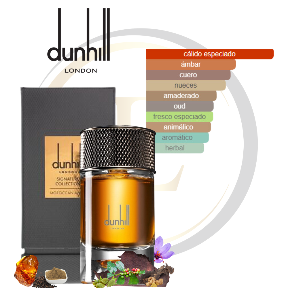 Moroccan Amber de Alfred Dunhill es una fragancia de la familia olfativa Oriental Especiada para Hombres. Moroccan Amber se lanzó en 2019. Las Notas de Salida son jengibre, cardamomo, pimienta negra y cilantro; las Notas de Corazón son avellana, azafrán y siempreviva; las Notas de Fondo son ámbar, cuero, madera de oud y Árbol de café