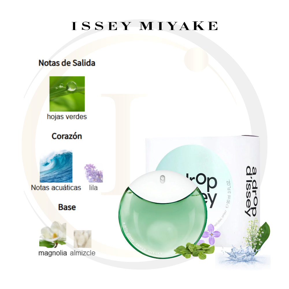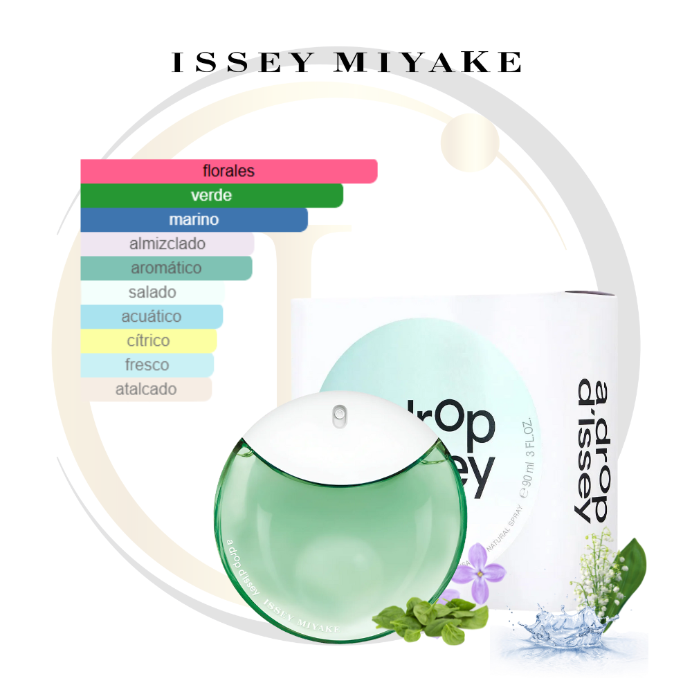 A Drop d’Issey Essentielle de Issey Miyake es una fragancia de la familia olfativa Floral Acuática para Mujeres. Esta fragrancia es nueva. A Drop d’Issey Essentielle se lanzó en 2023. La Nota de Salida es hojas verdes; las Notas de Corazón son Notas acuáticas y lila; las Notas de Fondo son magnolia y almizcle.