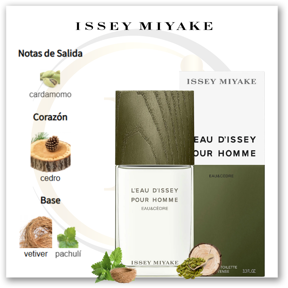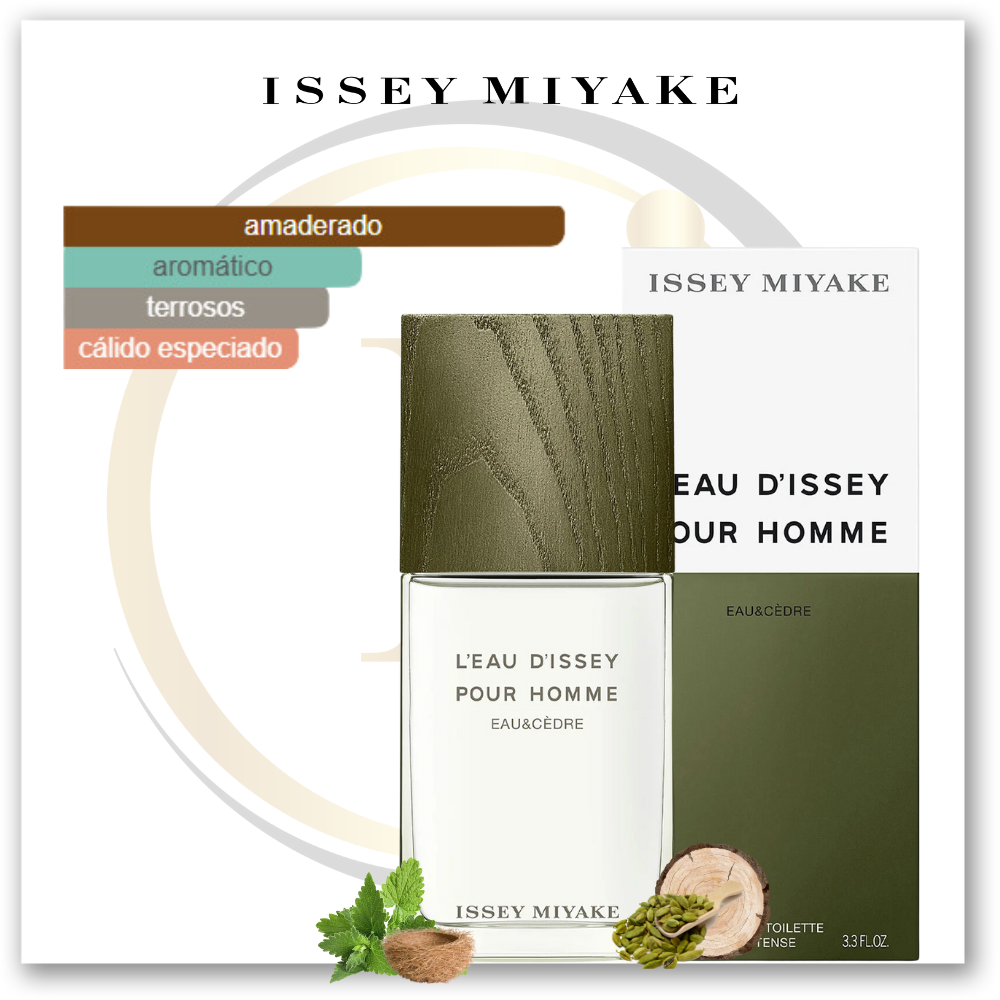L’Eau d’Issey Pour Homme Eau & Cèdre de Issey Miyake es una fragancia de la familia olfativa Amaderada Aromática para Hombres. Esta fragancia es nueva. L’Eau d’Issey Pour Homme Eau & Cèdre se lanzó en 2022. La Nariz detrás de esta fragancia es Marie Salamagne. La Nota de Salida es cardamomo; la Nota de Corazón es cedro; las Notas de Fondo son vetiver y pachulí.