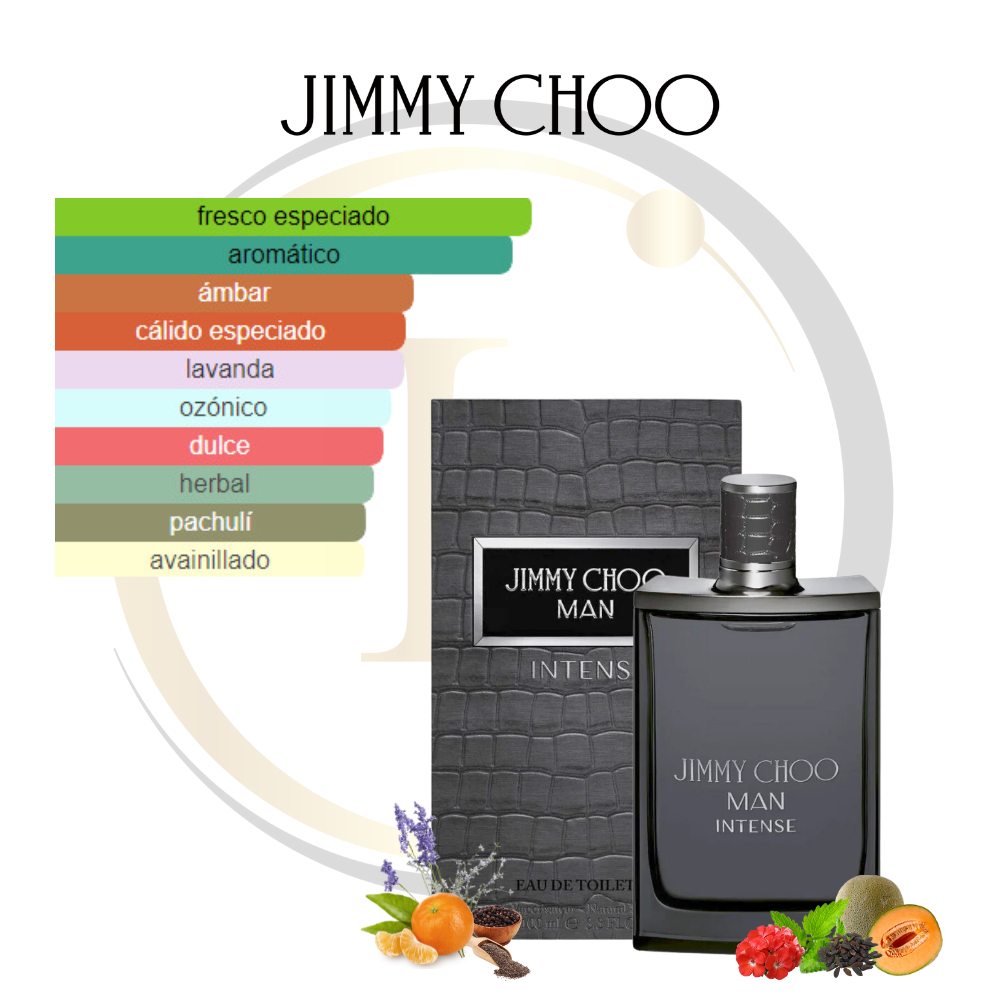 Jimmy Choo Man Intense de Jimmy Choo es una fragancia de la familia olfativa para Hombres. Jimmy Choo Man Intense se lanzó en 2016. Las Notas de Salida son melón, lavanda y mandarina; las Notas de Corazón son geranio, pimienta negra y abrótano; las Notas de Fondo son haba tonka, pachulí y ládano.