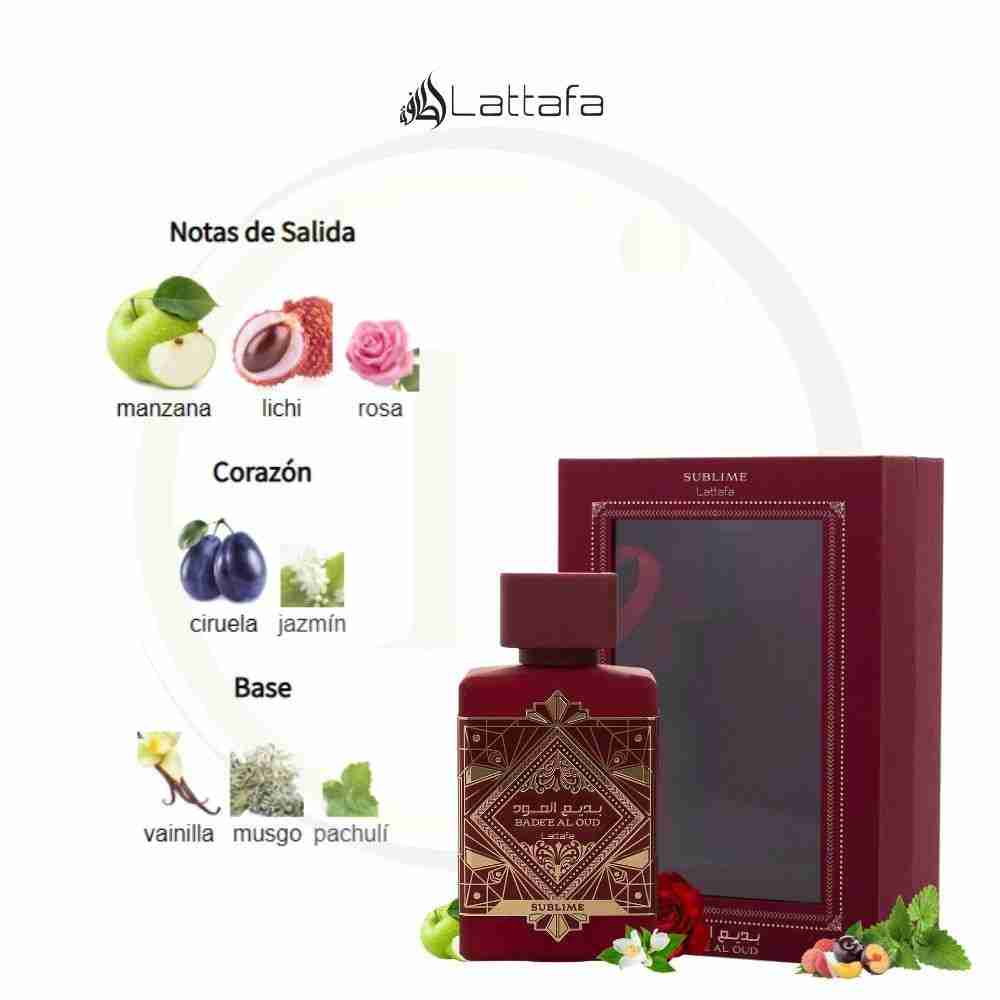 Bade’e Al Oud Sublime de Lattafa Perfumes es una fragancia de la familia olfativa Amaderada Aromática para Hombres y Mujeres. Esta fragancia es nueva. Bade’e Al Oud Sublime se lanzó en 2023. Las Notas de Salida son manzana, lichi y rosa; las Notas de Corazón son ciruela y jazmín; las Notas de Fondo son vainilla, musgo y pachulí.