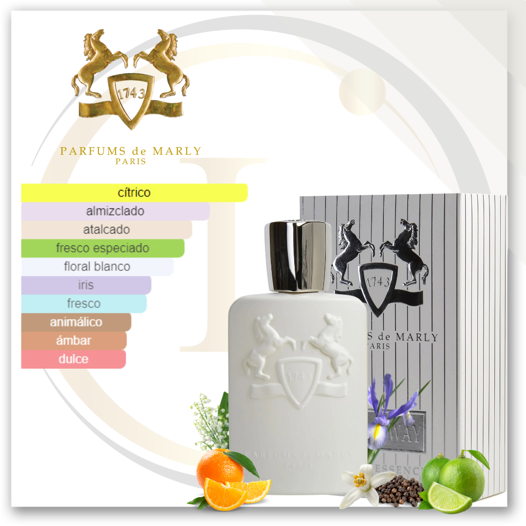 Galloway de Parfums de Marly es una fragancia de la familia olfativa Cítrica Aromática para Hombres y Mujeres. Galloway se lanzó en 2014. Las Notas de Salida son cítricos y pimienta; las Notas de Corazón son flor de azahar del naranjo y iris; las Notas de Fondo son almizcle y ámbar.