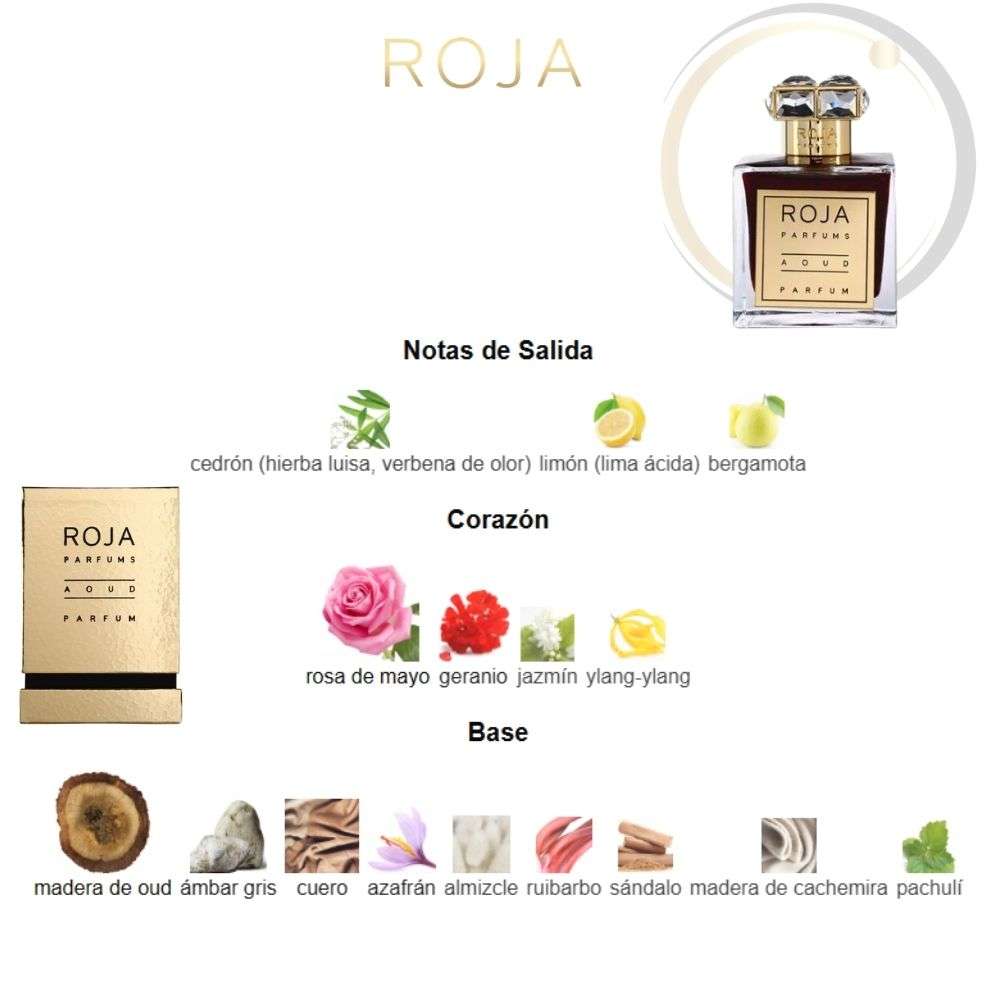 Aoud de Roja Dove es una fragancia de la familia olfativa Ámbar Especiada para Hombres y Mujeres. Aoud se lanzó en 2010. La Nariz detrás de esta fragrancia es Roja Dove. Las Notas de Salida son cedrón (hierba luisa, verbena de olor), limón (lima ácida) y bergamota; las Notas de Corazón son rosa de mayo, geranio, jazmín y ylang-ylang; las Notas de Fondo son madera de oud, ámbar gris, cuero, azafrán, almizcle, ruibarbo, sándalo, madera de cachemira, pachulí, nuez moscada, canela, cedro y vainilla.
