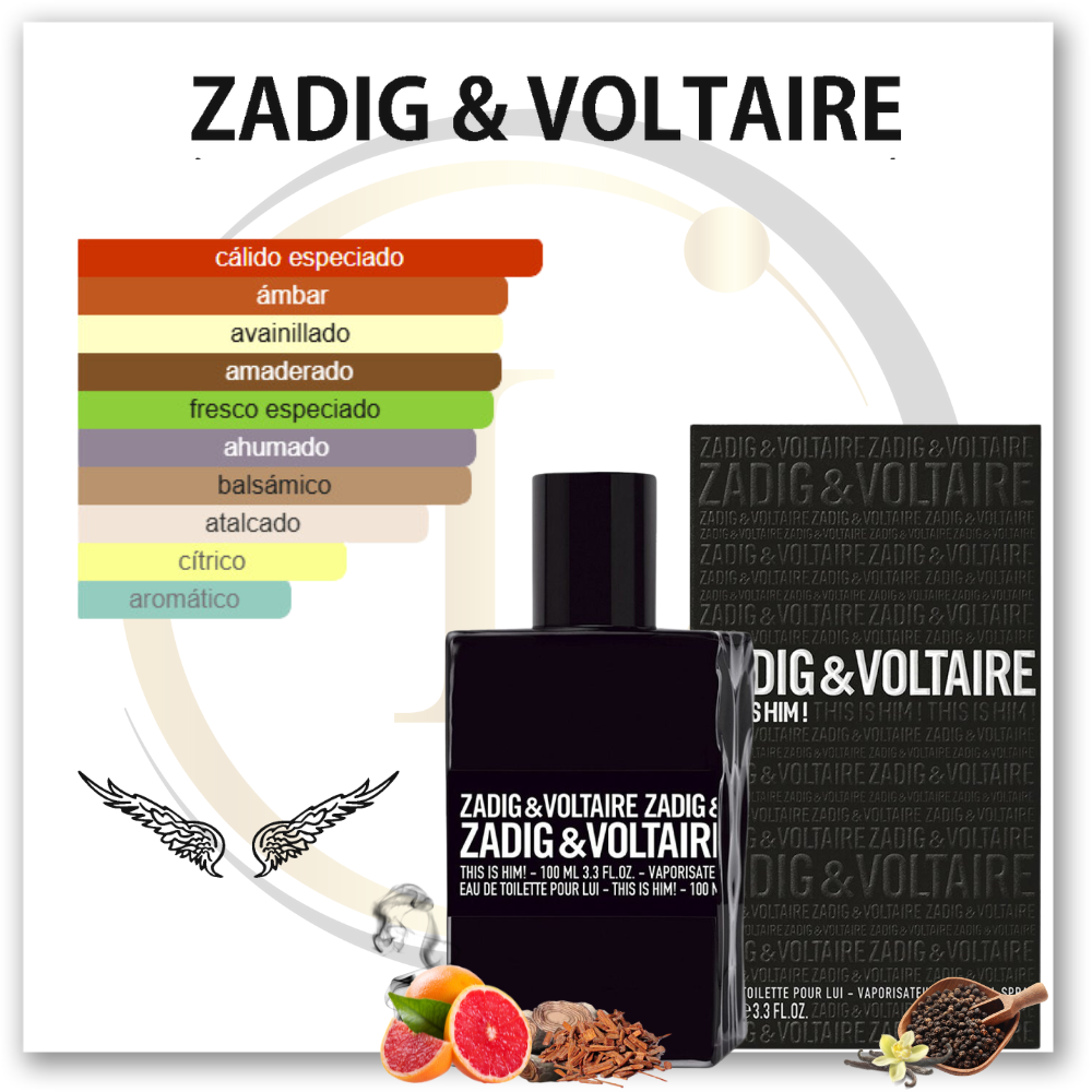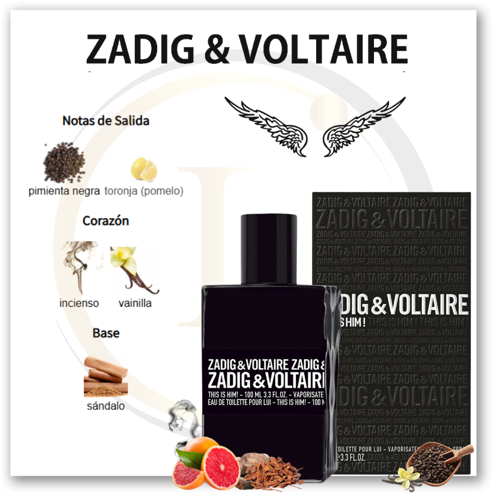 This is Him de Zadig & Voltaire es una fragancia de la familia olfativa Ámbar Amaderada para Hombres. This is Him se lanzó en 2016. This is Him fue creada por Nathalie Lorson y Aurélien Guichard. Las Notas de Salida son pimienta negra y toronja (pomelo); las Notas de Corazón son incienso y vainilla; la Nota de Fondo es sándalo.